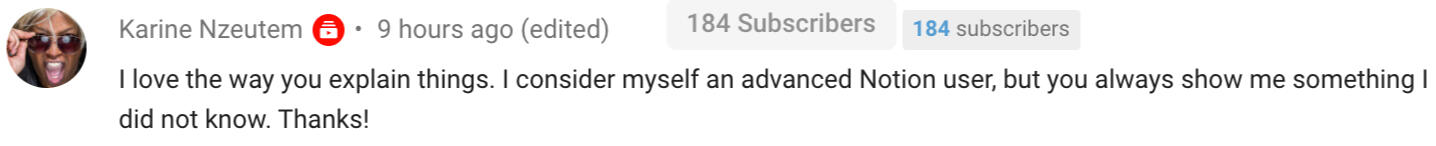 "Thanks a ton for putting together the best Notion tutorial course out there! Never seen anything come even close to this one!"